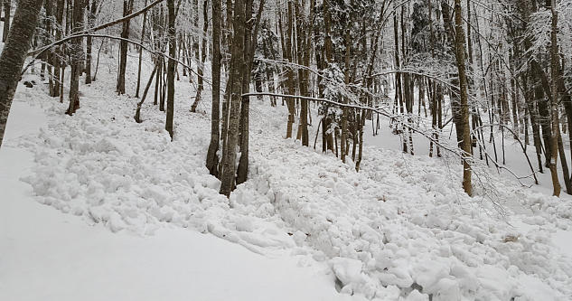 Diese Flocken werden wohl nicht Schuld für den Lawinenabgang im Wald sein. Na da möchte ich nicht gestanden haben...