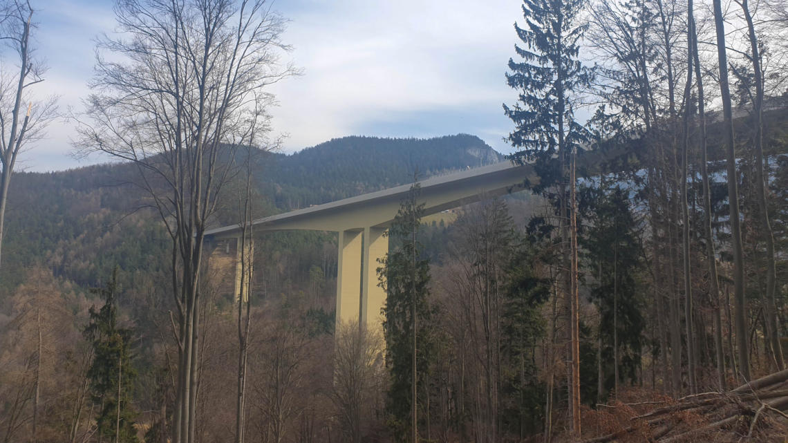 Hinunter geht es vorerst wieder zur Schnellstraße. Von dort wandere ich dann nach Maria Schutz.
