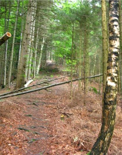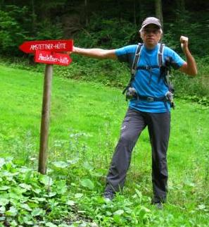 Im Wald ist der Weg eindeutig zu erkennen. Immer gerade aus, und schon bald sind wir bei der Amstettner Hütte die heute