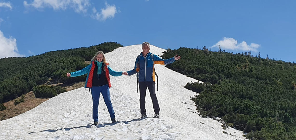 Beim ersten “G” haben wir dann einen super Ausblick zum zweiten “G”, dem Göller. Das ist nicht so weit wie es aussieht - ca. 1 Stunde.
