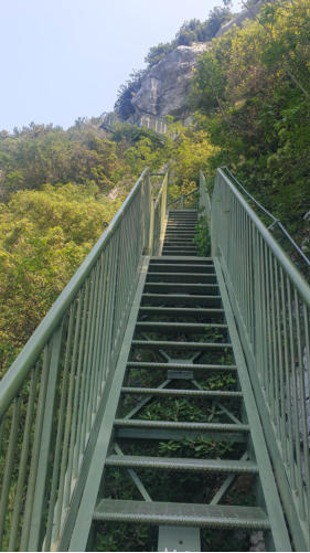 Von dieser Treppe aus kann man auf das „Valle di Ledro“ blicken. Dieses V-förmige Tal erstreckt sich auf der westlichen Seeseite in