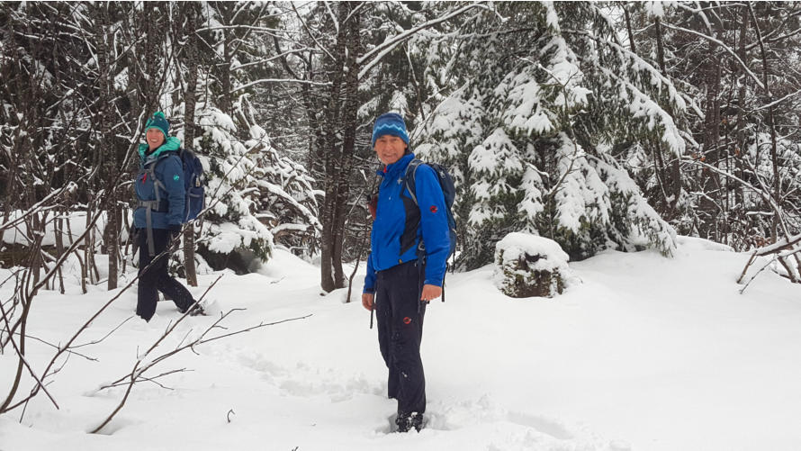 Oben sieht man die Bäume weiß angezuckert - das sieht nach Schwerarbeit aus. Zuerst müssen wir uns aber den richtigen Weg suchen.