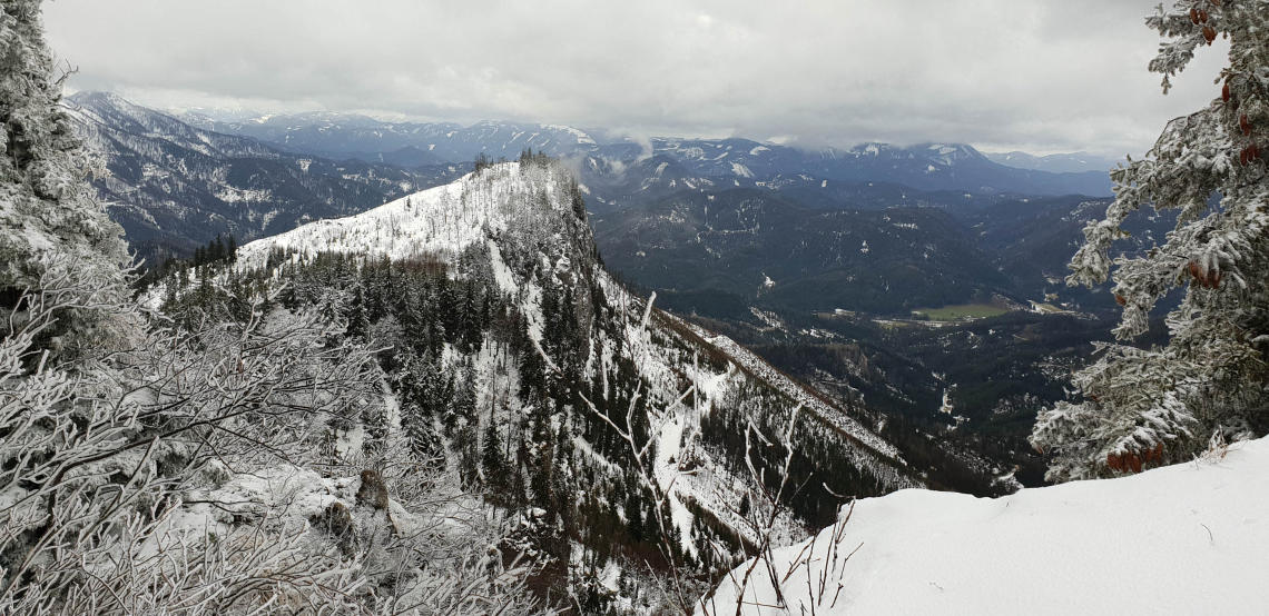 Ein Blick zu Schneeberg (links) und Rax (rechts).