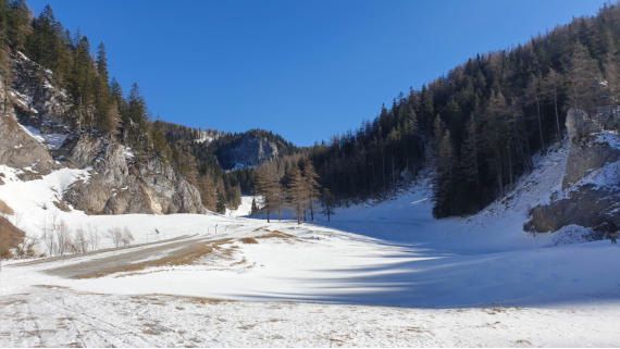 Geht recht gut im Graben nach Seewiesen. Unten Seeleiten und Seebergkögerl.