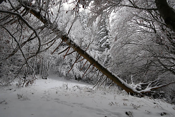 ich tue mir unerwartet schwer. Die gut 20 bis 30cm Schnee, darunter vorallem im Wald das rutschige Laub.