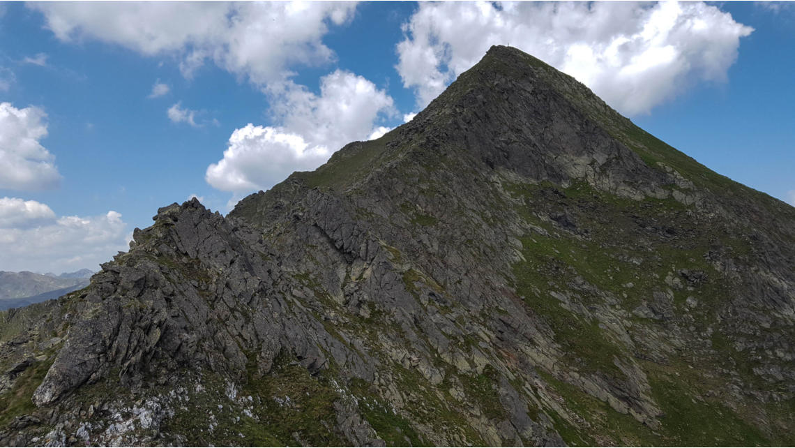 entpuppt sich bei der Begehung als Wackelstein. Pure Freude bei unserem Selfie vor dem höchsten Gipfel (2.475m) des Tages.