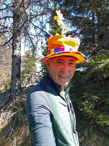 1.180m hoch ist der Ostgipfel des Hutberges. Ich bin natürlich standesgemäß adjustiert.