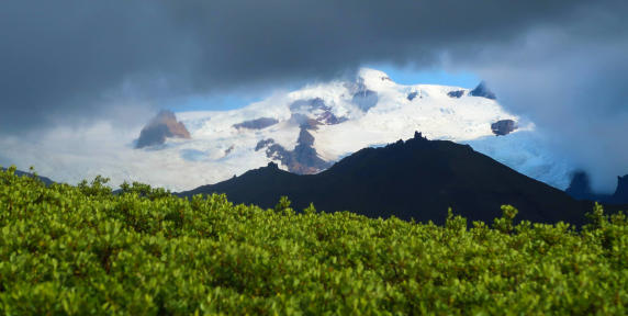 Der Gletscher ist leider fast nie Wolkenfrei. Dennoch ist es faszinierend ihm im Sonnenlicht zu sehen.Westlich sehen wir zum Morarjökull, das Foto dorthin - eher unbedeutend. Da ist die Sicht zum Kristinatindar schon wesentlich besser.
