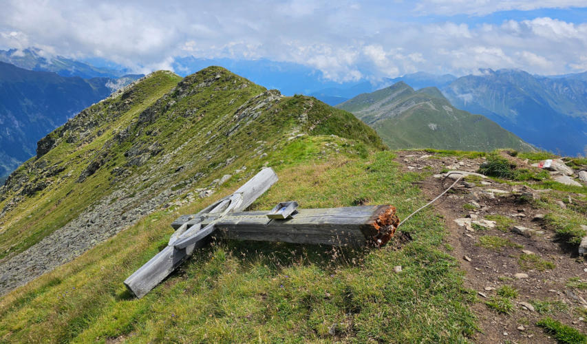 Das war wohl nicht das Wasser... eher der Sturm. Das Kreuz vom Glainter Hochjoch hat es wohl nicht überstanden.