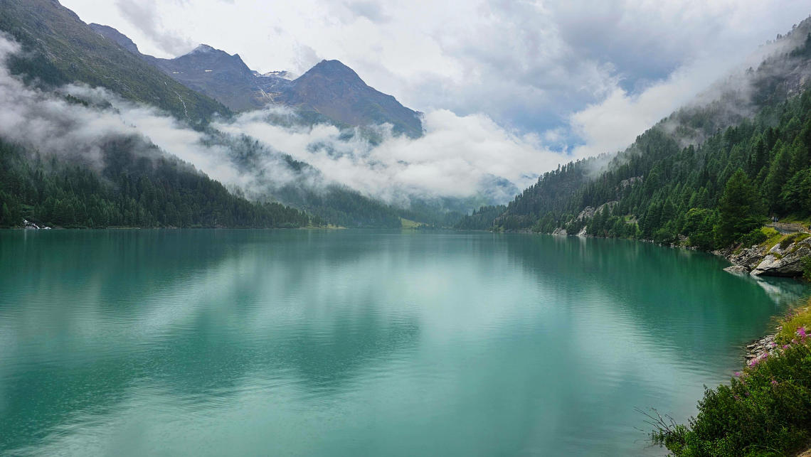 Der Zustieg vom Zufrittsee zur Lyfialm ist ohne Schwierigkeiten zu bewältigen. Es ist gerade 05:30 Uhr, Kaffee gibt es noch keinen.