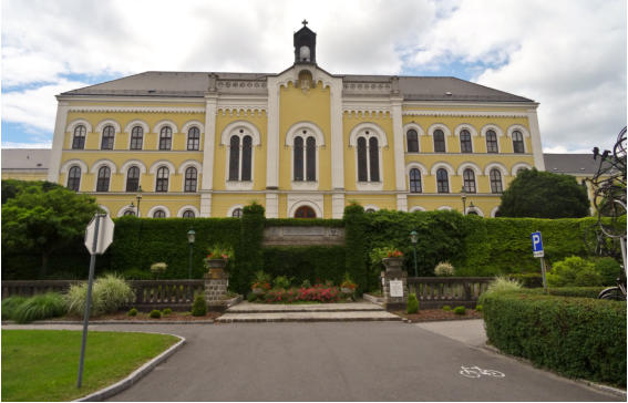 Geriatriezentrum Ybbs und auf der anderen Seite der Donau Schloss Persenbeug.