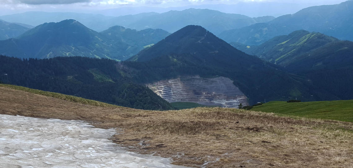 Die 1.390m hohe Weißmauer, davor der Steinbruch im Haringgraben.