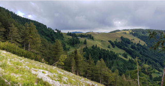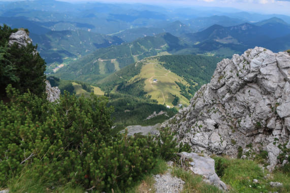 Vom Grafensteig sehe ich zum Almreserlhaus, Stritzelberg und zur Dürren Leiten.