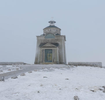 Nicht nur der Schneeberg hatte heute eine Haube... auch wir konnten die gut gebrauchen. Da Wasser im Brunnen war gefroren.