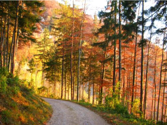 Der Weg zurück geht über die Forststrasse. Die Farbenpracht in der untergehenden Sonne - unbeschreiblich schön.