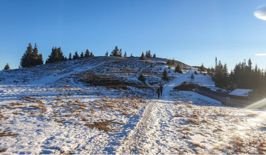 Richtung Buchecksattel, am Schwarzenberg liegt nicht mehr viel Schnee. Ebenso sieht es hinüber zur Roten Wand und Hochlantsch aus.