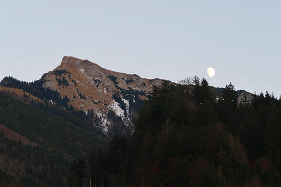 Dort angekommen ist es auch schon richtig dunkel. Der Mond über dem Schafberg, das ruhige Wasser des Wolfgangsees...