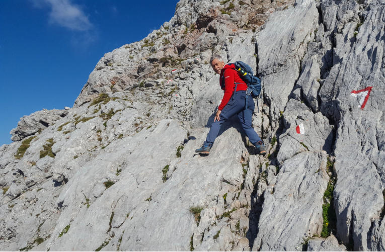 Bis dorthin ist es aber noch Zeit. Zuerst folgt mal der Anstieg auf der Westseite. Er ist ausgesetzt und nur stellenweise versichert.
