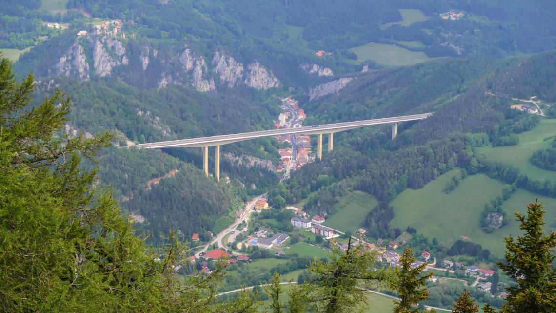 Der Ausblick ist ok - nicht aufregend, aber die hohe Brücke der S6 über Schottwien ist gut zu sehen.