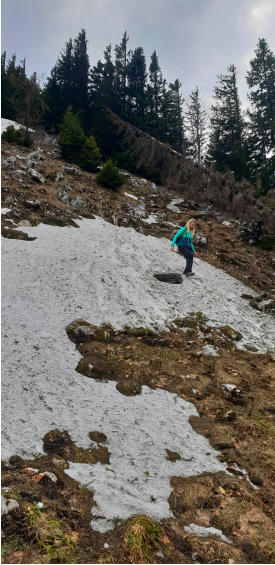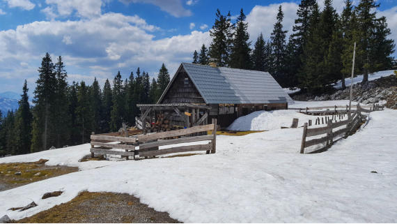 Keine Menschenseele weit und breit. Auch auf der Gippelalm, wo noch einiger Schnee liegt sind wir ganz alleine.