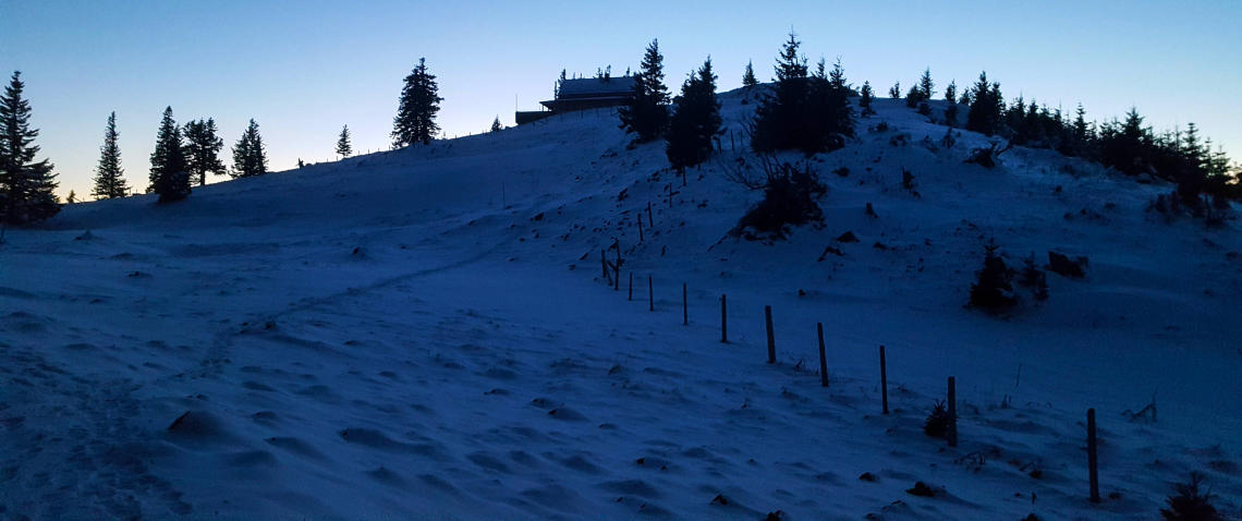 Schneeschuhwanderer und Skitourengeher kommen uns entgegen. Die meisten sind am Weg nach Hause... wir beginnen erst.