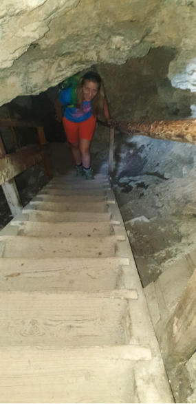 Die lange Leiter hinauf zur Höhle... nett ist das, aber dennoch sei hier Vorsicht geboten.