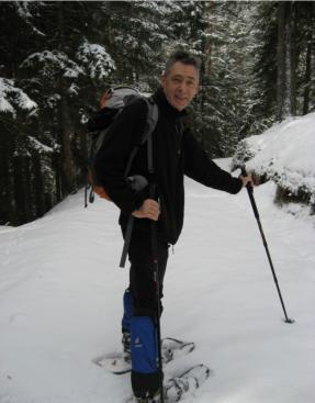 Man braucht immer nur den Schneeschuhspuren folgen. Und spätestens wenn es steil wird, ist auch sie wieder in Sichtweite.