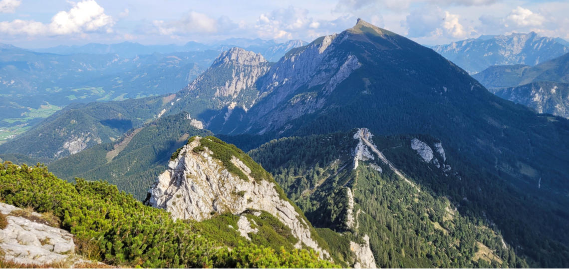 zur Tieflimauer, wo wir den Klettersteig besuchen und anschließend vom Gipfelkreuz hinüber zur Ennstaler Hütte gehen.