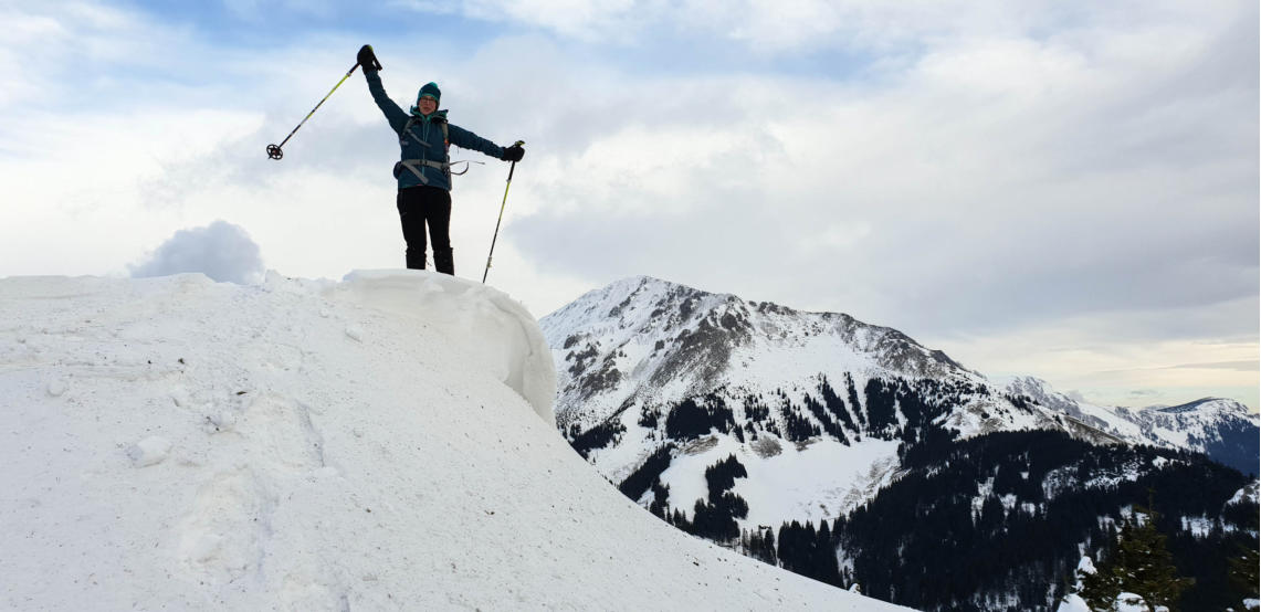 Wir nähern uns dem Turntaler Kogel auf 1.610m. Wie erwartet ist im Gipfelbereich der Schnee abgeblasen.