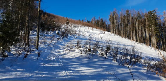 am Unterberg schon etwas weniger geworden, viel wichtiger ist aber dass die Lawinengefahr hier doch eher gering ist.