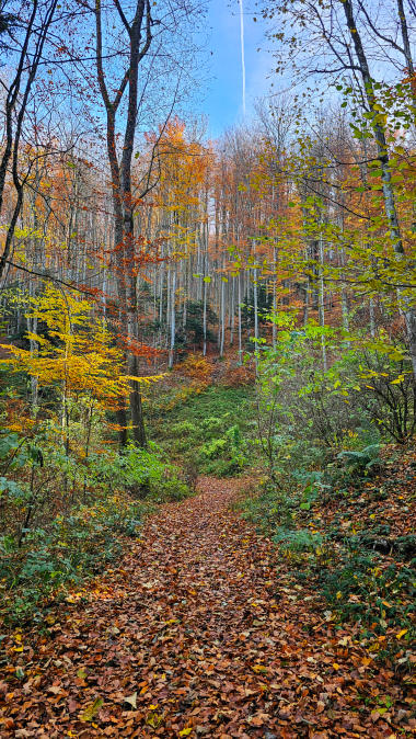 Die schöne Herbsttour ist 8.5km lang, dabei sind 500Hm zu absolvieren. Schön war das, sehr zu empfehlen.