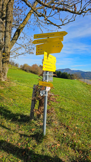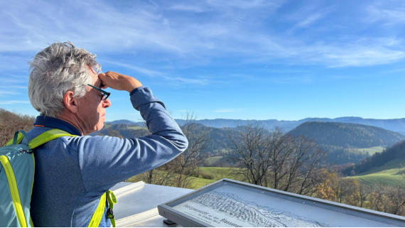 Strahlender Sonnenschein. Herrlich, genau das brauche ich jetzt. Vor uns ist die Urlingerwarte zu sehen.