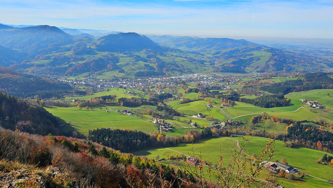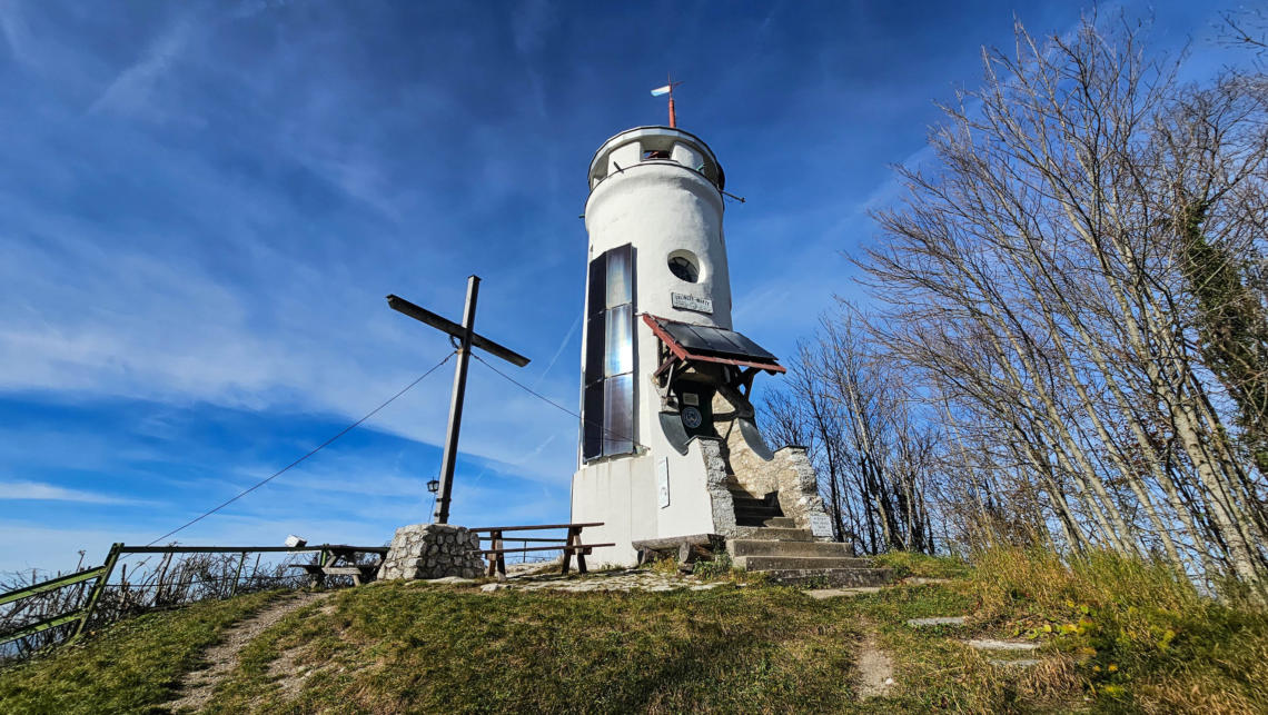 Vom Aussichtsbankerl noch einmal ein Blick zur Urlingerwarte.