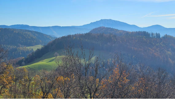 Die Fernsicht ist ganz gut. Rechts ein Blick zum Großen und kleinen Ötscher.