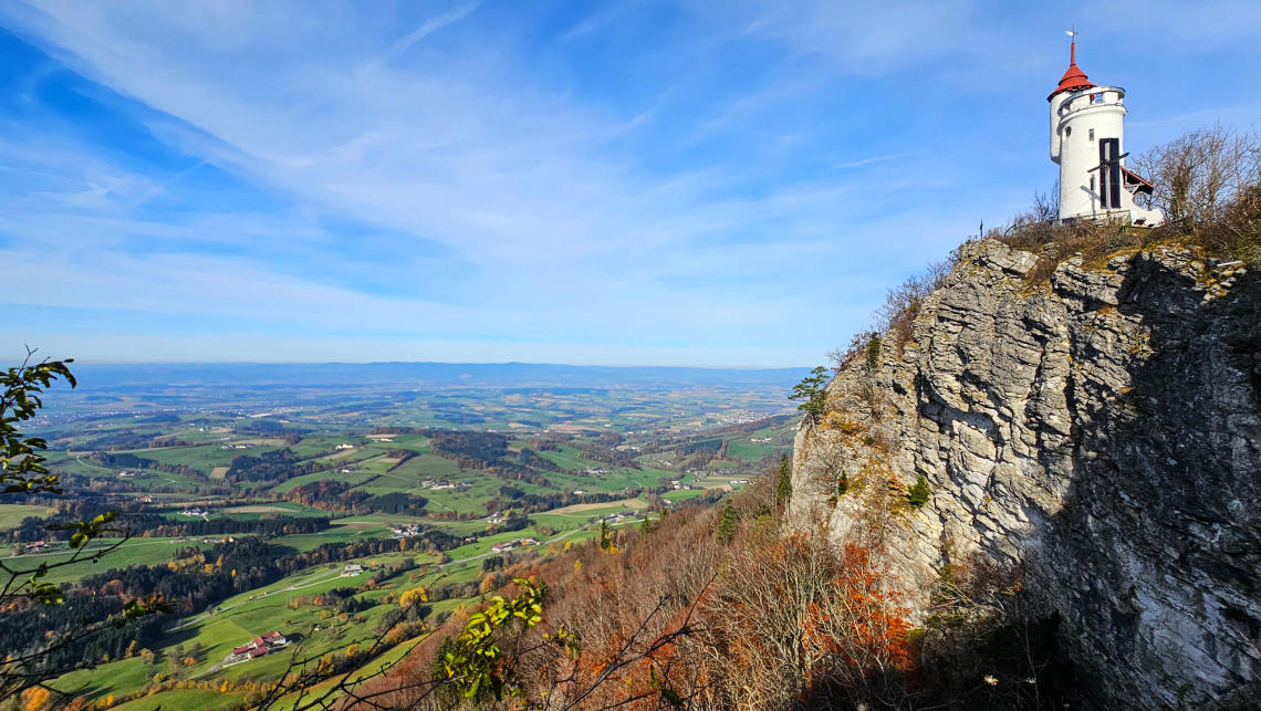 Die Urlingerwarte. Heute hatte ich das Glück, sie war offen und nach ein paar Holztreppen waren wir auch schon oben.