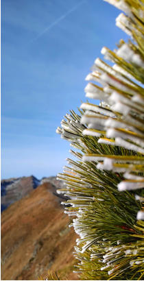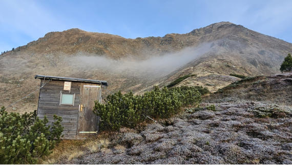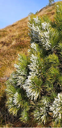 Am Pass ist es noch recht kühl. Der erste Frost der letzten Nacht hinterließ seine Spuren.