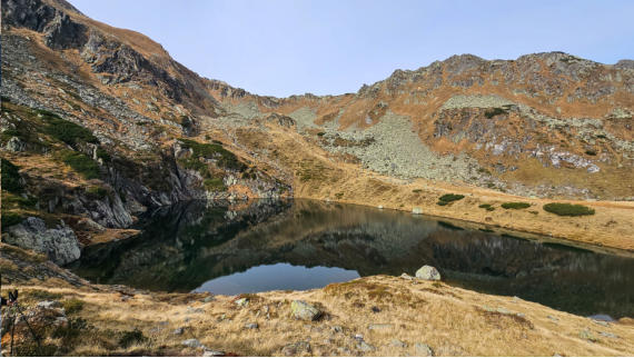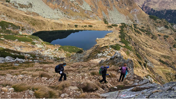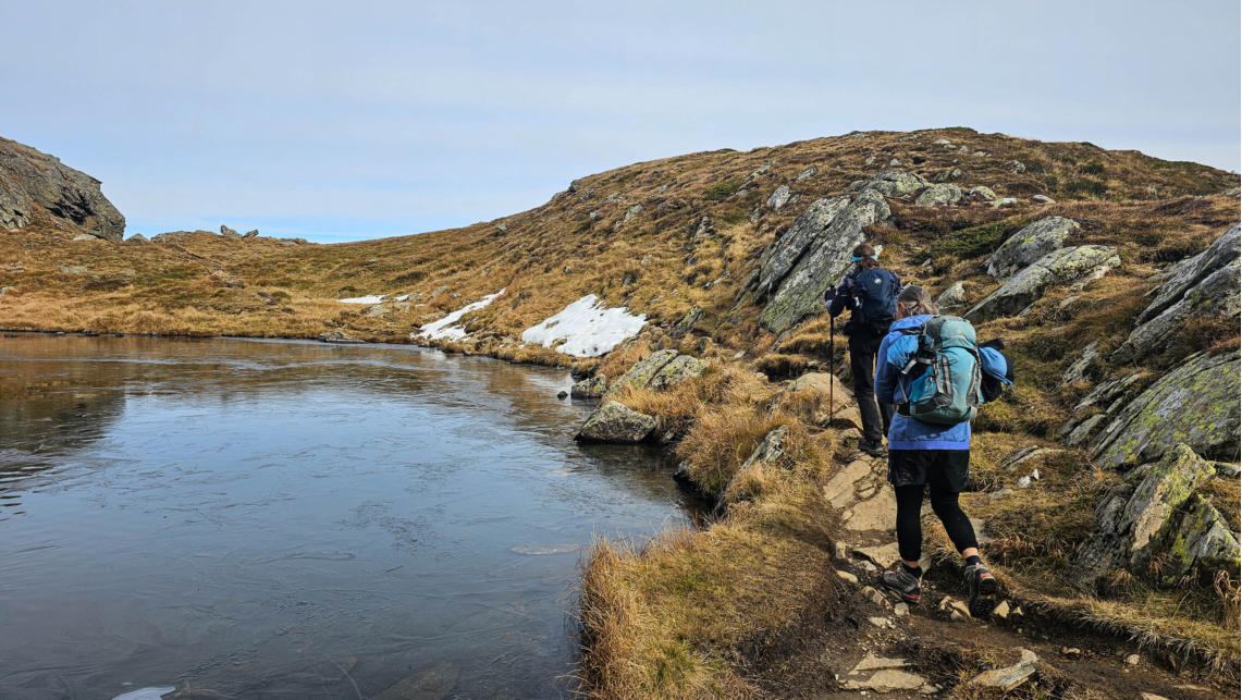 Trotz den wärmenden Sonne, hatten die Damen die Grödeln statt dem Bikini mit. Somit gab es keine Erfrischung im glasklaren See.
