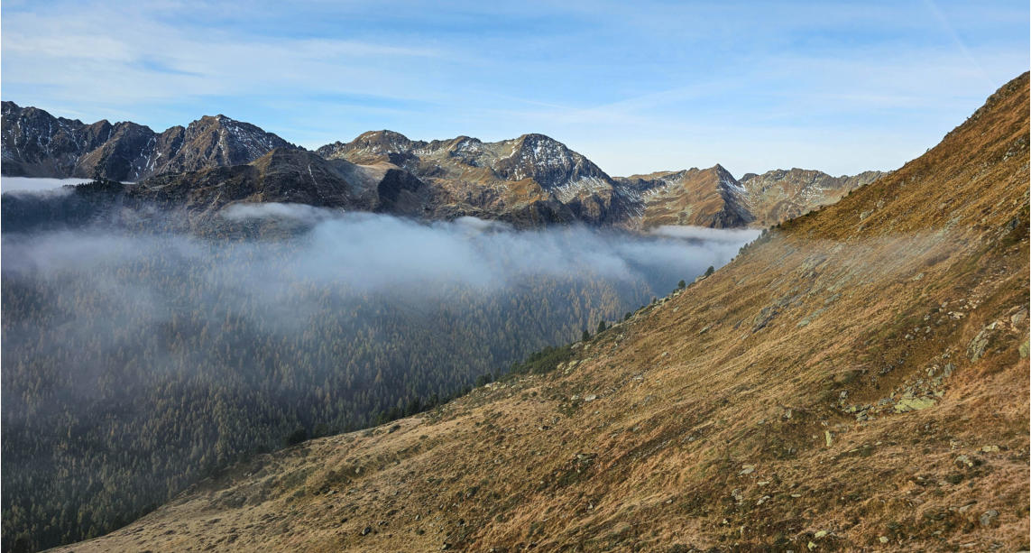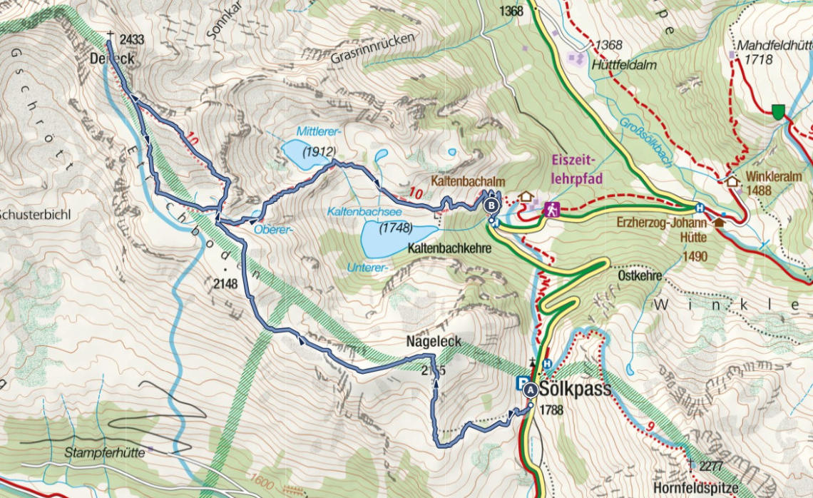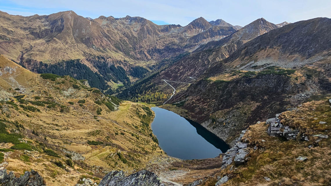 Von hier geht es jetz hinunter. Vorbei an den Kaltenbachseen bis zur Kaltenbachkehre.
