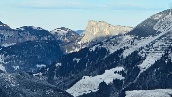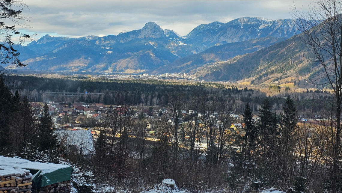 Bild oben im Hintergrund in der Sonne der Stubwieswipfel, rechts unten dann gezoomt. Rechts im Bild ein Blick in Richtung Liezen.