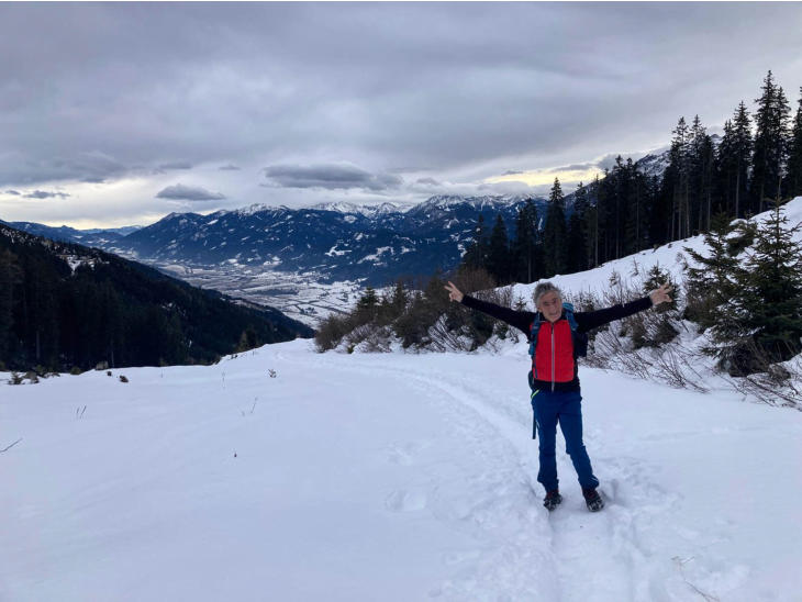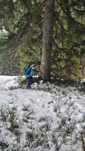 Bis zur Messneralm geht es mehr oder weniger immer bergan. Auch wenn es weiß aussieht, von Winter ist nicht zu sehen. Die