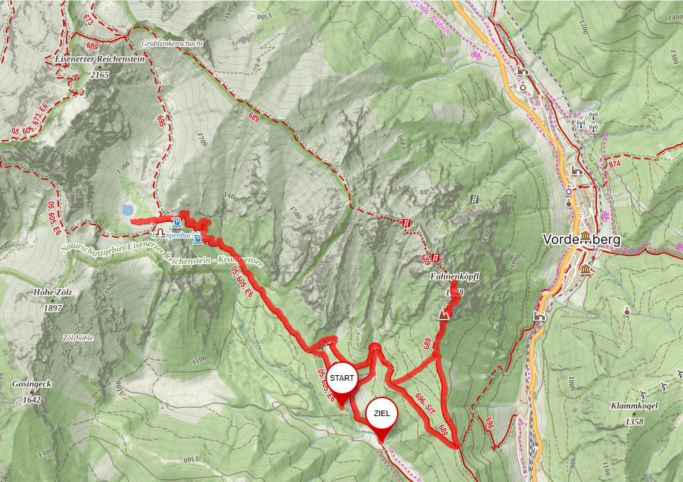 Nach wenigen Minuten finden wir eine “Abkürzung” die uns nicht zum Barbarakreuz sondern gleich hinauf zum Fahnenköpfl bringt.