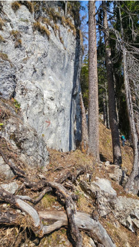 Links im Bild die Kante mit den etwas abgespeckten Felsen ist wohl eine der Schlüsselstellen dieser Tour.