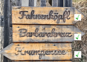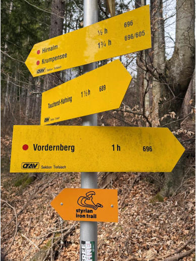 Begonnen hat es am Parkplatz unterhalb der Hirnalm wo wir bald die ersten Wegweiser zum Fahnenköpfl vorfinden.