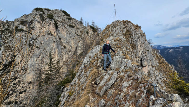 Nochmals Herzkogel und der Thalerkogel. Gleich vom Gipfel weg gibt es wieder schöne Seilpassagen für den Abstieg.