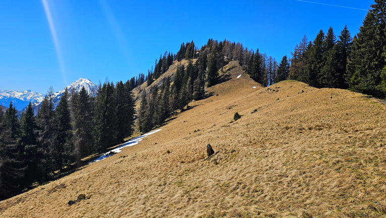 Zwischen diesen beiden Almen führt der Steig dann aufwärts. 1 Stunde ist weit übertrieben, im halbwegs flotten Tempo 30 Minuten.