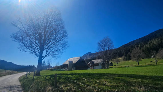 Bei den ersten Almen sehen wir dann auch schon unser Ziel - das Feldl.