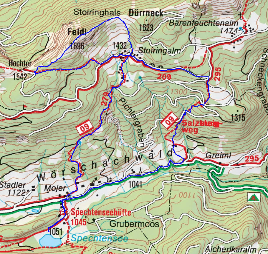 So hatten Romana und ich heute noch ein Ziel in der Wörschachwaldgegend - das Feldl. Vom Spechtensee geht es flott aufwärts.