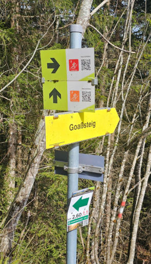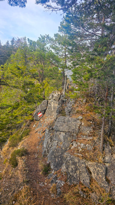 Hat man diese Tafel “Nur für geübte Alpingeher” mal erreicht beginnen die ersten seilversicherten Stellen.
