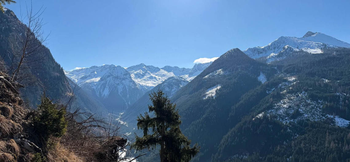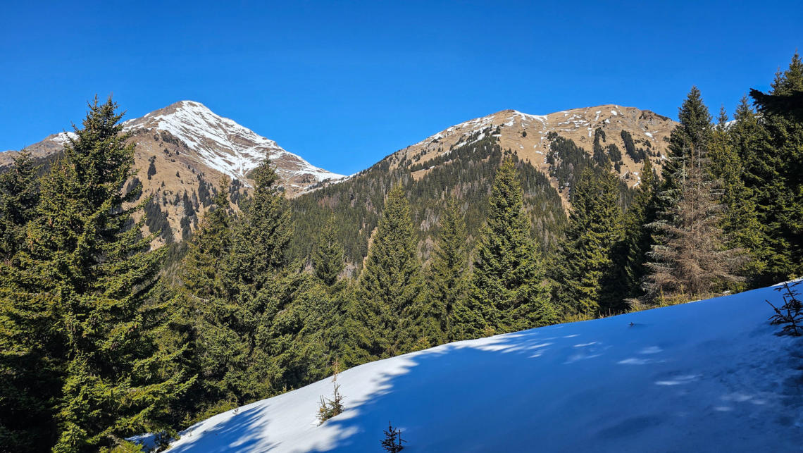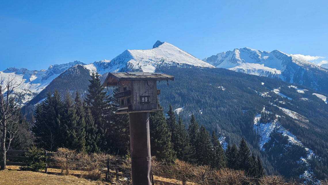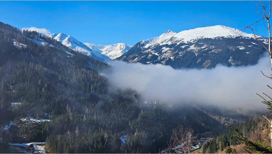 Zeitweise haben wir zum Gamskarkogel, Finsterkopf und Throneck eine gute Sicht. Im Sommer bestimmt tolle Ziele von hier.