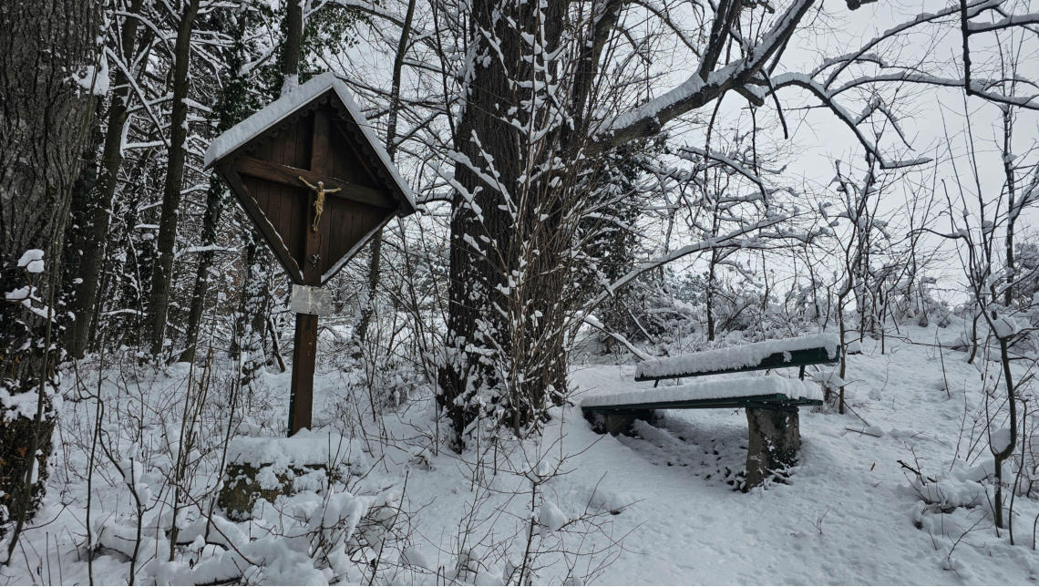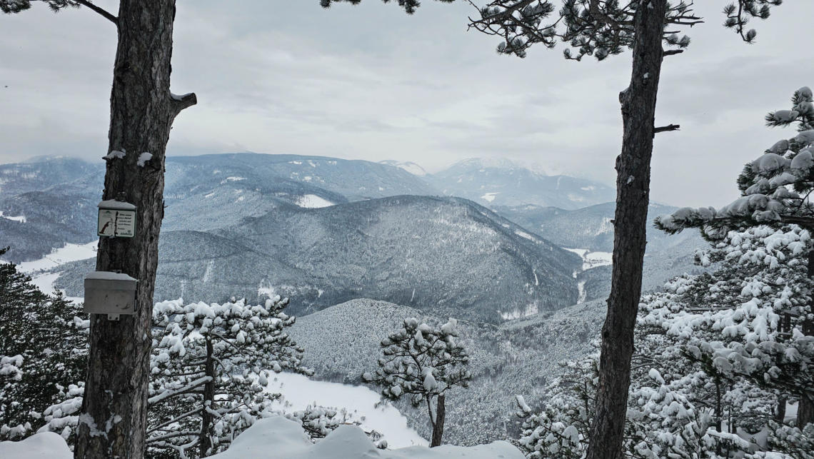 Ausblick gibt es am Gösing keinen. Ein schönes ruhiges Platzerl ist das hier. Ruhe und wenig Ausblick auf Änderung fiel mir auch bei der Betrachtung des Wahlergebnisses der Stadtgemeinde Ternitz auf. Von den 37 Gemeinderäten fallen in Ternitz gleich 25 auf die SPÖ. Der Rest verteilt sich gleichmäßig auf die anderen Parteien. Seit 1990 hat die SPÖ hier die Absolute Mehrheit. Das nenne ich mal ein klares Votum, Zufriedenheit in der Bevölkerung. Hier sind wir beim sogenannten Schneebergblick. Er ist heute nur schwer erkennbar. Im Sommer sicher ein schönes Platzerl hier.